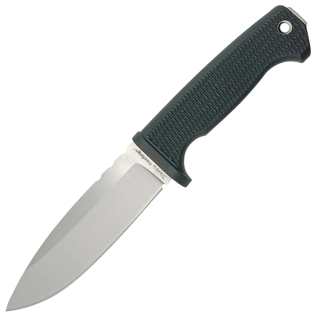 The Free Reign™ Fixed Blade by Demko Knives features a full tang constructed handle with a rubberized grip. This allows for better handling and grip strength while battling tough outdoor elements. The Free Reign™ comes with a universal Kydex sheath which includes molle mounting capabilities. The Free Reign fixed blade is an excellent outdoor companion, sharp, rugged, and up to the challenge.