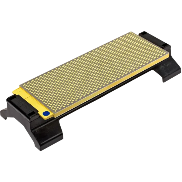 Innovative, multi-patented DuoSharp® Bench Stone is a precision flat, two diamond surfaced sharpener guaranteed to provide consistent, even sharpening every time. The 10" counter or bench sharpener offers larger, wider diamond surface for sharpening a variety of edges including shears, cleaver and specialty knives, plane sole, machete, etc.
