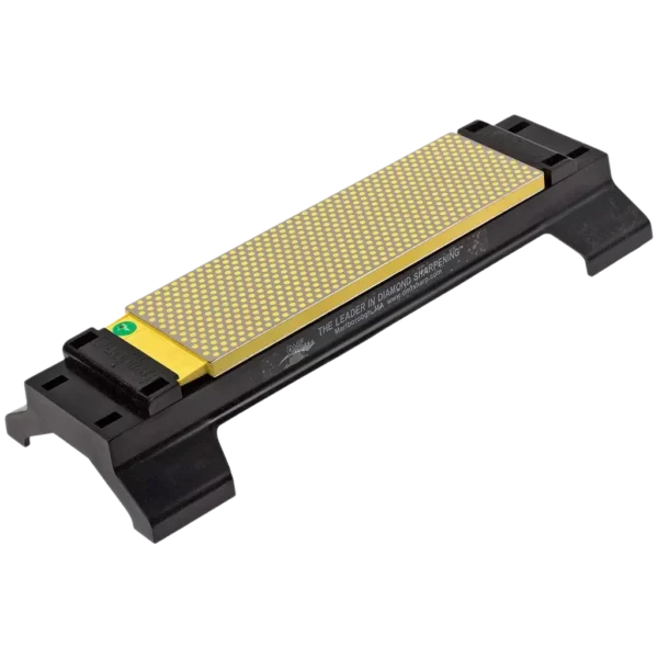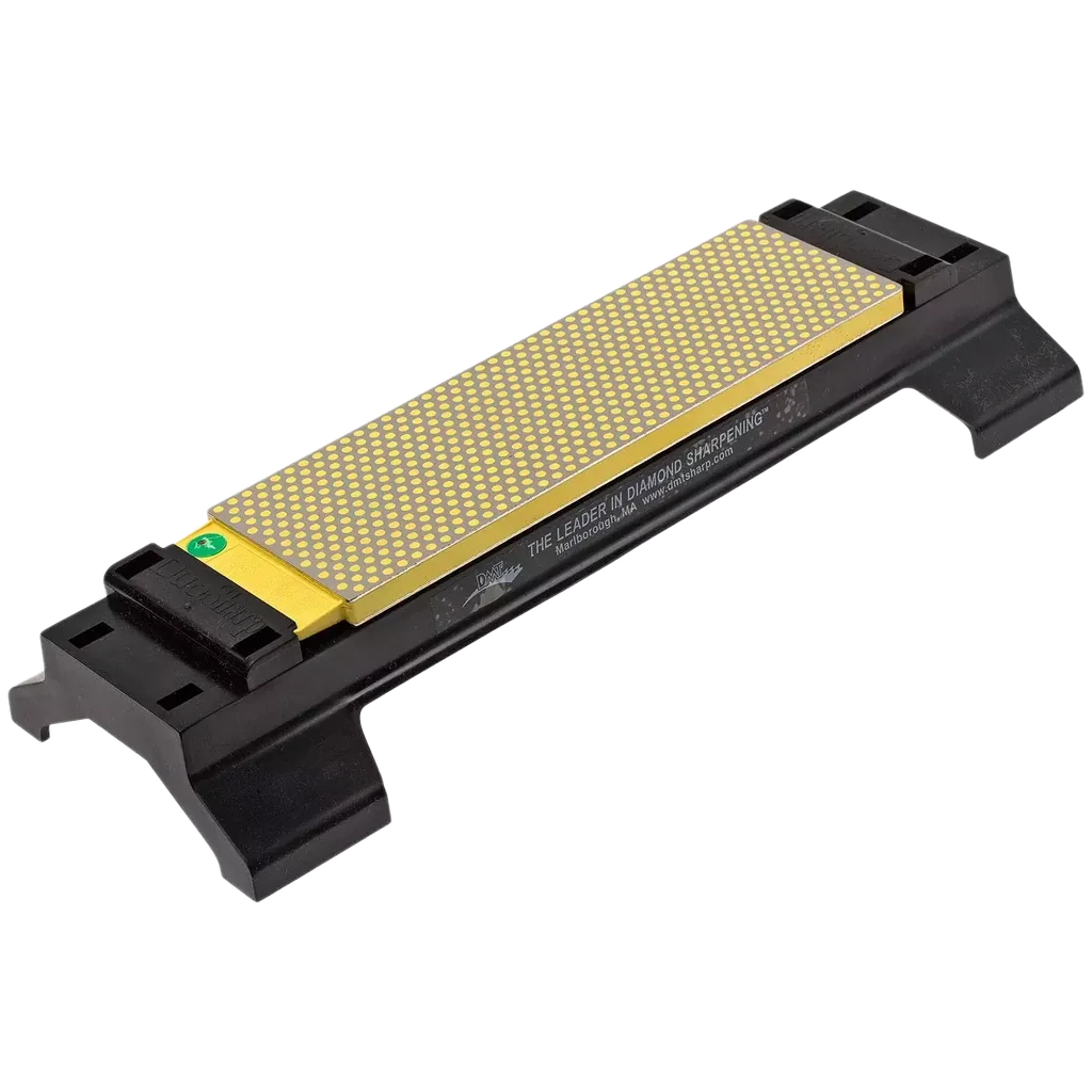 This DuoSharp® features two sides of interrupted diamond surface sharpening and is the ideal benchstone for the shop or kitchen, especially when paired with the optional DuoBase™. The 8 inch length is perfect for chisels, plane irons, chef knives – practically any tool. While providing a generous sharpening surface, it is engineered to be rugged, lightweight and compact – great on the jobsite! The 8" product is also available in the DuoSharp®plus™ configuration featuring a 2" continuous zone of DMT® diamond for small and pointed tools such as woodcarving gouges and engravers.