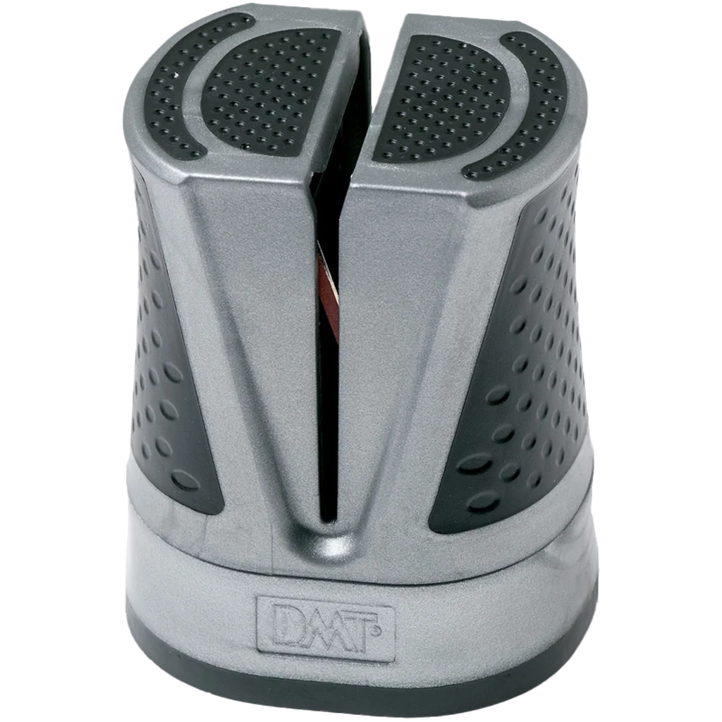 The DMT Simple-Sharp Diamond Sharpener is designed for use at home or in the workshop, offering a sharpening surface that fulfils a variety of edge care requirements and sharpens both edges simultaneously. Equipped with fine diamond (25 micron / 600 mesh) for a razor sharp edge, the sharpener features a rubberised foot to prevent slipping and rubberised sides for a good grip. The case is easy to remove for cleaning or for changing the sharpening stones. The Simple-Sharp uses two DMT W7F sharpening stones with fine grit. They can be exchanged with W7E sharpening stones with extra-fine grit, W7C with coarse grit or W7X with extra-coarse grit, which are available separately. Sharpening with diamonds is fast and easy. No messy oils needed – sharpen dry. Durable construction will provide years of consistent performance and reliable service. For proper tool maintenance, Woodworkers, Chefs and other professionals, rely on the outstanding quality and versatility of DMT products. Made in the USA. Size: 110 x 92 x 83 mm.