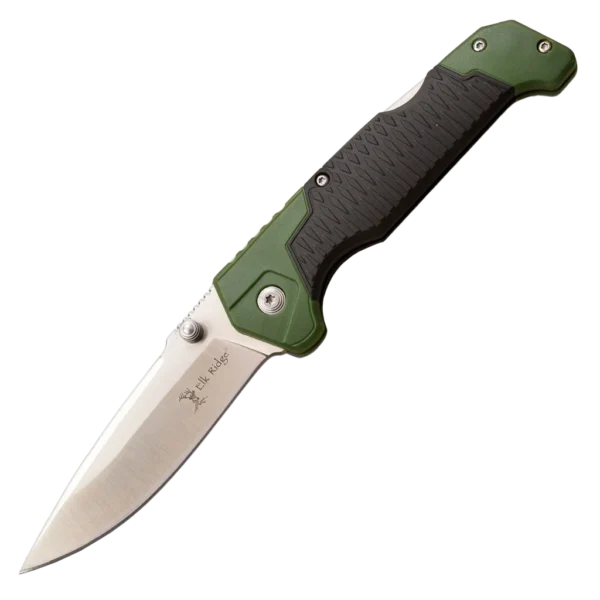 The Elk Ridge Alpine Folder features a 3.5" 8Cr13MoV stainless steel drop point blade with a satin finish. It’s a manual flipper with ambidextrous thumb studs. This lockback has alpine green injection-molded nylon fiber handles with black rubber overmold and a tip-up pocket clip. It’s 4.5" closed and weighs 4.41 oz.