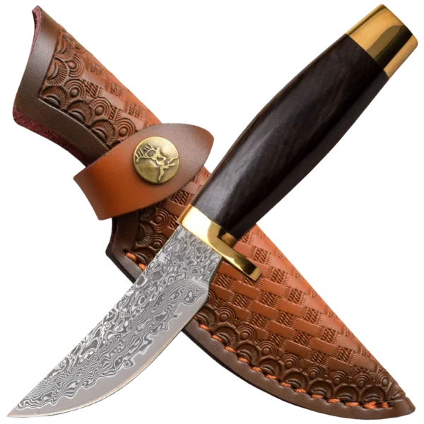 Beautifully made fixed blade knife from Elk Ridge. This knife comes with a 3.5" mirror polished Damascus Stainless Steel blade. The edge is continuously curved offering exceptional performance and meets the handle with a nickel bolster/finger guard. The handle is made from polished wood and capped with a matching nickel pommel.