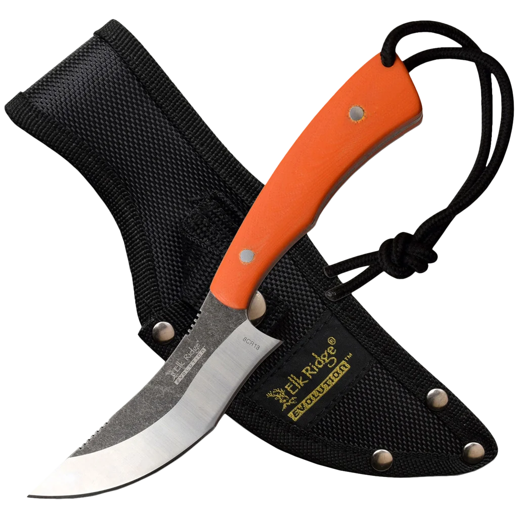 Made from quality materials. The 8CR13 steel fine edge blade provides an excellent balance of hardness and corrosion resistance. Provides consistent razor-sharp cutting performance and high durability. Comes with compound ground blade with recurved section and deep belly tip. A knife you can count on for camping, hiking, backpacking, hunting & fishing, the outdoors, DIY activities, survival, and emergencies.
