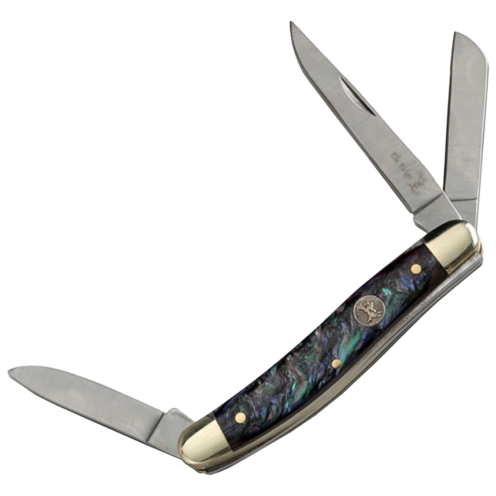 Featuring Clip, Spey and Sheepsfoot blade styles,this Elk Ridge folding knife allows the user to select the best type of knife for the cutting task at hand. Finished with an attractive satin shine, simulated abalone handle scales and Elk Ridge Medallion. The largest of the blades measures 2.75" and the folder measures 3.5" when closed.
