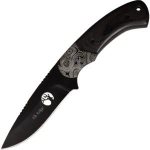 Made from quality materials -the 3CR13 black stainless steel fine edge drop point blade provides an excellent balance of hardness and corrosion resistance. The ER-200-09BK redefines the outdoor knife. Combining traditional and non-traditional materials to create a handsome and unique fixed blade knife, where the outdoors meets the gentleman's carry. The handle is made from black pakkawood wood and features etched stainless steel bolsters. This item comes with a leather belt sheath.