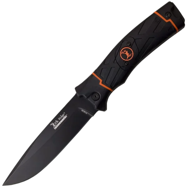 Elk Ridge Evolution Fixed Blade Knife HIGH QUALITY MATERIALS: Made from premium quality materials. 8CR13 black stainless steel blade provides an excellent balance of hardness and corrosion resistance. OUTDOOR EVOLVED: Where the outdoors meets the gentleman’s carry. Combines traditional and non-traditional materials to create handsome and, unique, combinations that redefine the category. DEPENDABLE: Provides consistent razor sharp cutting performance and high durability. A knife you can count on for camping, hiking, backpacking, and enjoying the outdoors. DIMENSIONS:5 inch Drop Point Fine Edge Blade, 10.25 inches overall. SPECIAL FEATURES: Nylon/Hard Sheath, Full Tang Construction, LED Light, Fire Starter, Rubber and Nylon Handle. LED Light, Fire Starter, Injection Molded Nylon Fiber Sheath
