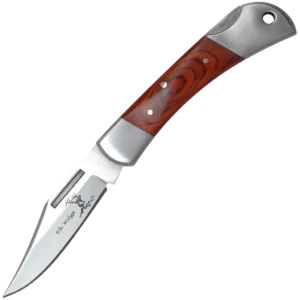 - Manual Folding Knife 2.25" Blade, Made from 440 stainless steel 3.5". Closed brown pakkawood inlay handle with lockback