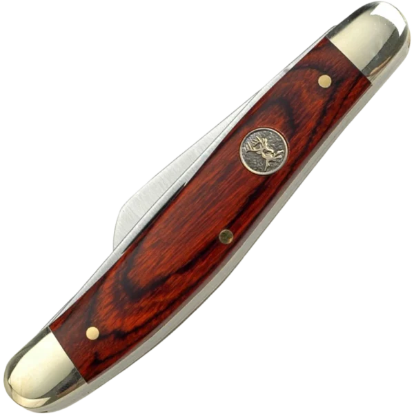 Featuring 2.75" Clip, Spey and Sheepsfoot blade styles, this knife allows the user to select the best type of knife for the cutting task at hand. Finished with an attractive mirror shine, brown wood handle scales and Elk Ridge Medallion. 3.5" when closed.