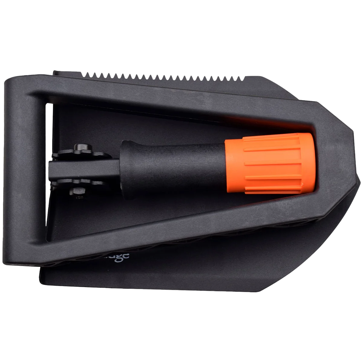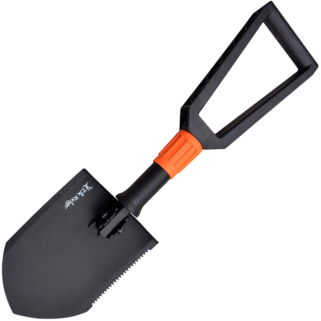 A compact and collapsible shovel/entrenching tool from Elk Ridge. The Trek Shovel measures 23" overall when extended and is comprised of a 9" x 8" black carbon steel shovel head and a 14.75" steel tubing/injection molded nylon fiber handle. When collapsed the shovel measures 16" in length.