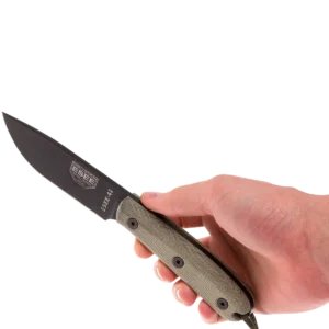 - The full-tang blade is surrounded by a micarta handle. The grip feels a little rough, which enhances grip and comfort.