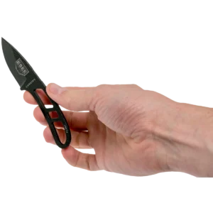 The Esee Candiru is a robust fixed blade knife with an overall length of 5.13" and weighing 1.7 oz. Compact and lightweight, the knife is the perfect addition to a lightweight survival kit. The drop point blade features a cutting edge of 2.0" and a thickness up to 0.125". The Candiru is made from 1095 carbon steel with a textured powder coat finish. The skeletonised handle ensures the knife is lightweight without compromising on grip and control. The Candiru comes with a molded, black sheath and is available in a choice of colours.