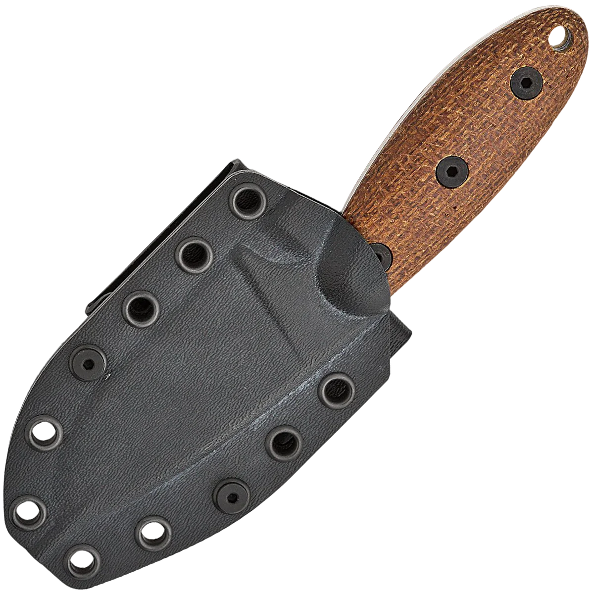 The ESEE® Knives Sencillo™ was designed and prototyped by Jeff Randall, in response to the demand for a knife in a better steel than their widely used 1095 steel. It’s a simple knife by a simple company. In fact, the name reflects that as the literal translation of Sencillo™ is “Simple”. The Sencillo™ is slightly bigger than the IZULA-II and features 3D handles so it feels nice in the hand. Bottom line is it will cut hay strings, whittle a stick, and cut your sandwich in half. If you’re looking for something innovative and hyped, then it’s probably not the knife for you. If you are looking for a knife to work day in and day out, it’s worth your consideration. The Sencillo™ is made in the U.S.A. by White River Knife and Tool. It features an overall length of 7 ¼” with a 1/8” blade thickness, full flat grind, Burlap Micarta handles and ambidextrous Kydex sheath.