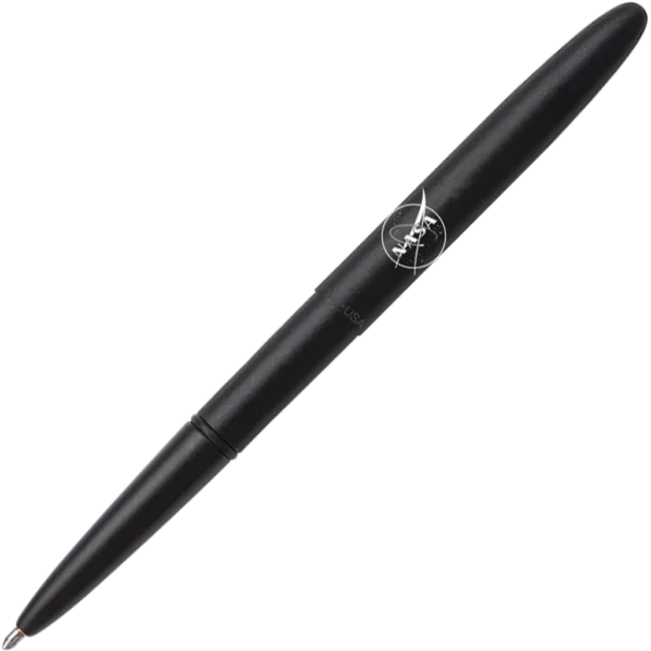 Description Style: Cap Slides On & Off Finish: Non-Reflective Matte Black Length: Open – 5.25" Closed – 3.75" Cartridge: Fisher Pressurized PR4 Black Ink Medium Point Packaging: Moonscape Gift Box For over 50 years, Fisher Space Pen has been proud to have our technology approved and used on every crewed flight into space since 1967 with NASA. Today, space exploration is achieving unimaginable accomplishments, while NASA is continuing to push the envelope of what is possible, in space. Finally, our fans have the chance to collect their first Bullet Space Pen donning the NASA Meatball logo! When closed, the Bullet Space Pen is the perfect size to carry in your wallet, pocket, purse, car glove box, organizer or toolbox. When opened it's a full-sized, evenly balanced writing instrument. Each Bullet Space Pen will write upside down – at any angle, under water, through grease, in extreme temperatures (-30 to +250 degrees F), on almost any surface, three times longer than the average pen, and of course in the gravity free vacuum of space. The original Bullet Space Pen was conceived in July of 1948 by Paul Fisher, who was soon machining a new pen design shaped from solid aluminum. This became our first Fisher ball point pen, the #400 Bullet Pen, and arguably the most popular pen of the twentieth century. Cited as an outstanding example of industrial art, the classic design of the Fisher Bullet Pen has a place in the permanent collection in the New York Museum of Modern Art. The Bullet's timeless styling has been the topic of many art books and magazine articles. Often imitated but never duplicated, the Fisher Bullet Space Pen continues to be our most popular pen design.