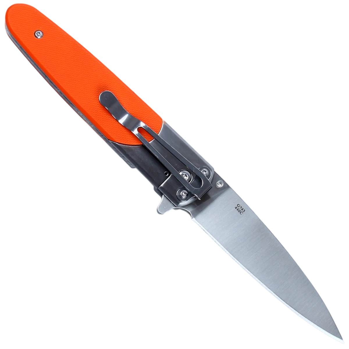 Ganzo G743-1 model looks distant and laconic. The design of this knife is more classic than sportive. Nevertheless, it is equally convenient to use it for both everyday tasks and nature or camping trips. The main material of this knife is 440C stainless steel. It is widespread in the knife industry due to good tolerance of real-life conditions and keeps high-quality sharpening for a long time. The knife blade is sharpened completely smooth and, therefore, it is convenient to cut any food, and many other materials. All cutting sections are accurate and flat. Blade length of this knife is 87 mm. Strength is provided by the metal thickness of 3 mm. The metal surface is treated using a hot-pressing technique. This is a smooth grinding, in which the blade remains barely visible bar marks indicating the direction of metal processing. Ganzo G743-1 has a combined handle. Area near the blade (about one-third of the length) is also made of steel and has the same treatment as the blade. On the remaining part, both handle sides have cover plates from fiberglass composite known as G10. They are bolted to the base by two small bolts. The surface of cover plates is roughened by applying a small knurling. This helps to keep the knife in the hand even tighter if the palms are wet. One side of the handle has a fixed clip that is also made of steel. Its relocation is impossible in this model. Characteristics: Convenient folding knife; Blade material is 440C steel; Blade size is 87 mm; Handle length is 113 mm; Knife weight is 130 grams; Handle material is G10; Smoothly sharpened blade.