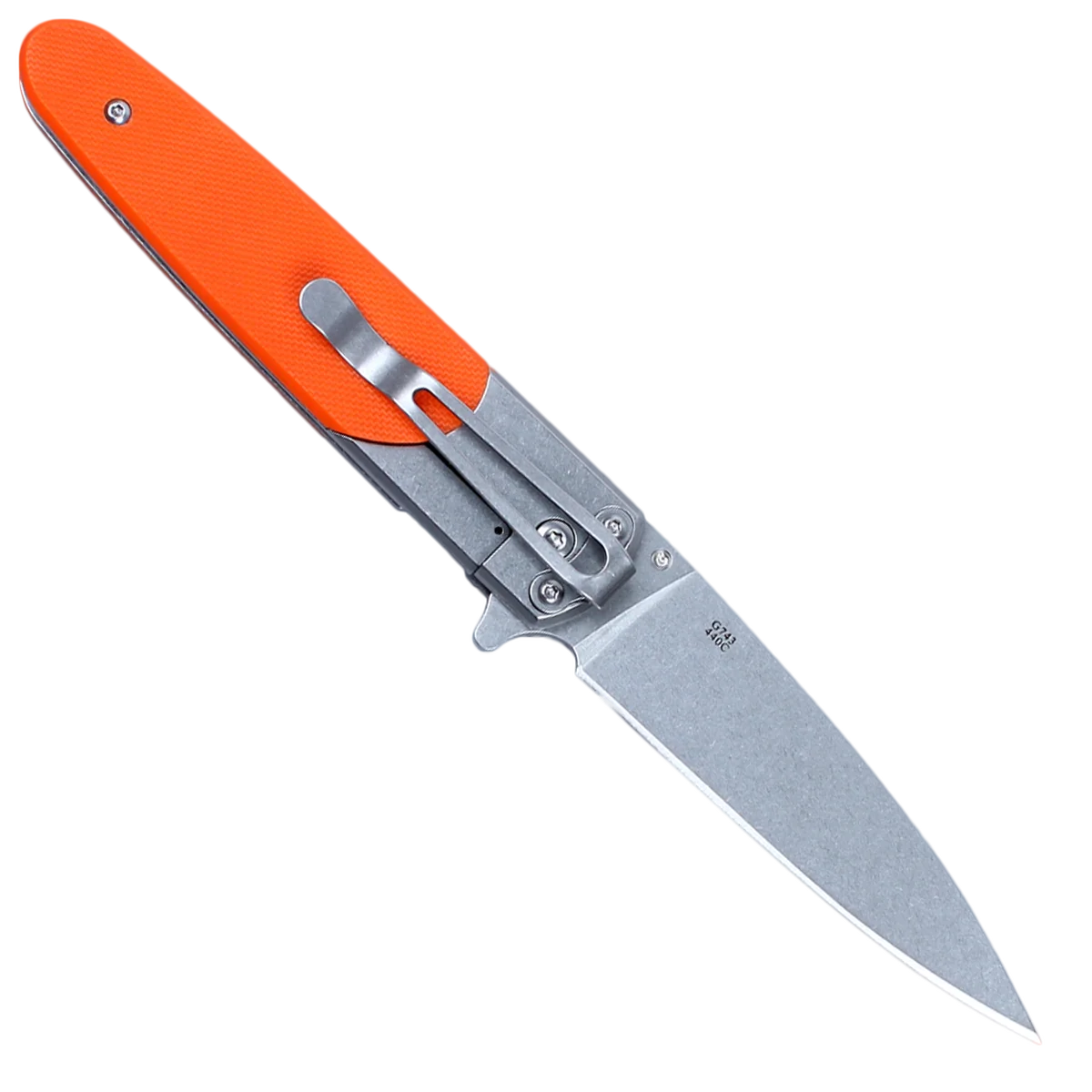 Ganzo G743-2 model looks distant and laconic. The design of this knife is more classic than sportive. Nevertheless, it is equally convenient to use it for both everyday tasks and nature or camping trips. The main material of this knife is 440C stainless steel. It is widespread in the knife industry due to good tolerance of real-life conditions and keeps high-quality sharpening for a long time. The knife blade is sharpened completely smooth and, therefore, it is convenient to cut any food, and many other materials. All cutting sections are accurate and flat. Blade length of this knife is 87 mm. Strength is provided by the metal thickness of 3 mm. Ganzo G743-2 model is characterized by almost matt blade and Stonewash treatment. It reflects only direct rays and scratches are less noticeable on such surface. Ganzo G743-2 has a combined handle. Area near the blade (about one-third of the length) is also made of steel and has the same treatment as the blade. On the remaining part, both handle sides have cover plates from fiberglass composite known as G10. They are bolted to the base by two small bolts. The surface of cover plates is roughened by applying a small knurling. This helps to keep the knife in the hand even tighter if the palms are wet. One side of the handle has a fixed clip that is also made of steel. Its relocation is impossible in this model. Characteristics: Convenient folding knife; Blade material is 440C steel; Blade size is 87 mm; Handle length is 113 mm; Knife weight is 130 grams; Handle material is G10; Smoothly sharpened blade.