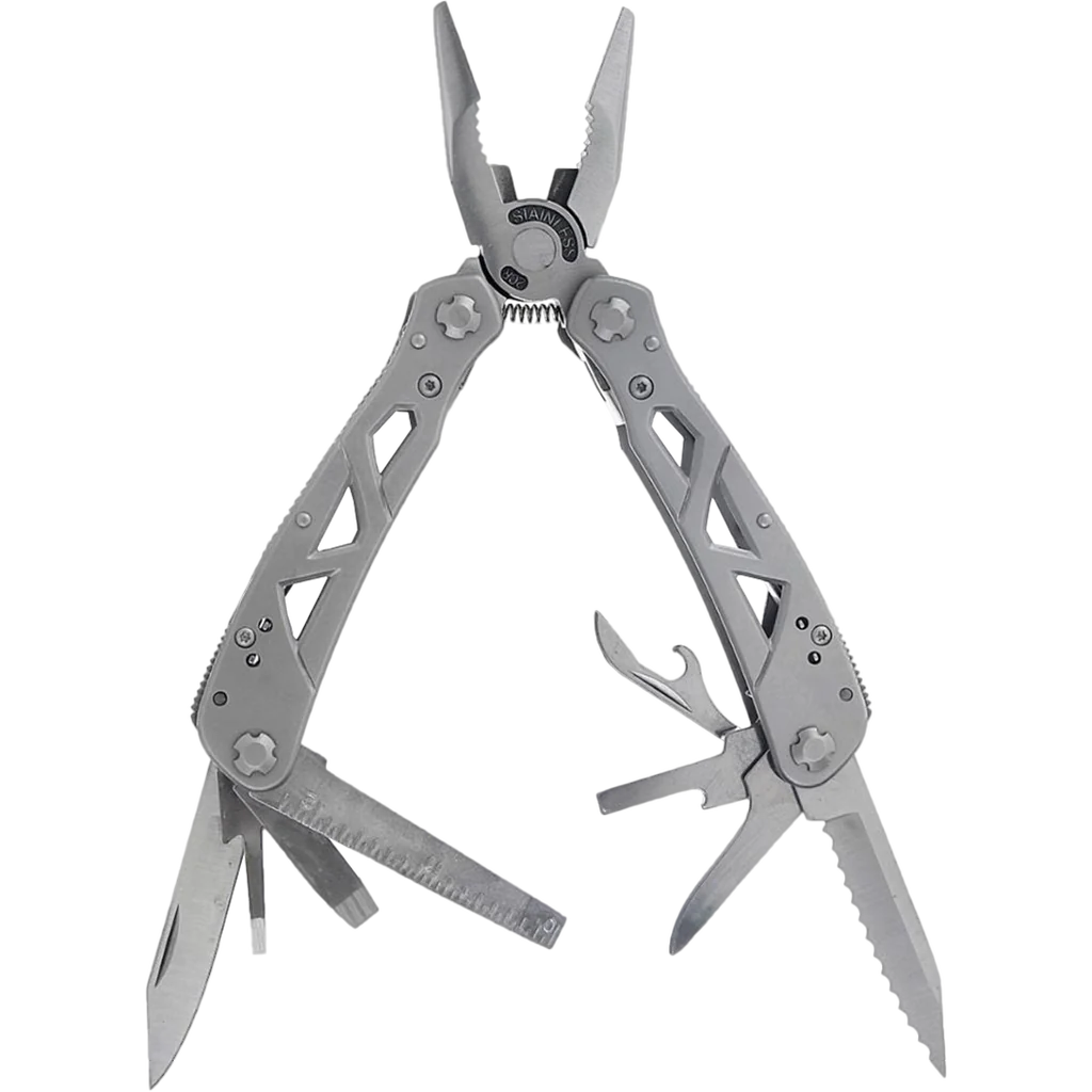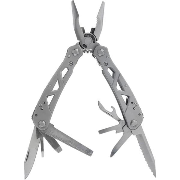 The Ganzo G112 is a full-sized multi-tool with all the necessary characteristics to become indispensible in every backpack. This multi-tool can correct fishing gears, repair camping equipment, a bike or even a car. All elements of the multi-tool are made of 3Cr13 steel, The characteristics of this alloy are similar to the popular 440A steel but this is harder (about 57HRC), this allows the blades to remain sharp for a longer time. Since this type of steel has good rust resistance it can withstand harsher environmental conditions. The pliers are the main tool of the Ganzo G112 multi-tool. They are strong enough to be able to do serious work. with built in cutting-pliers. The kit includes two knives: with straight and serrated cutting edges, awl, ruler, bottle opener for cans and bottles, crusiform screw-driver and two flat screw-drivers. The kit also includes nine replaceable heads for screw-drivers and a magnetic adapter for them. All supplied in a Nylon case.