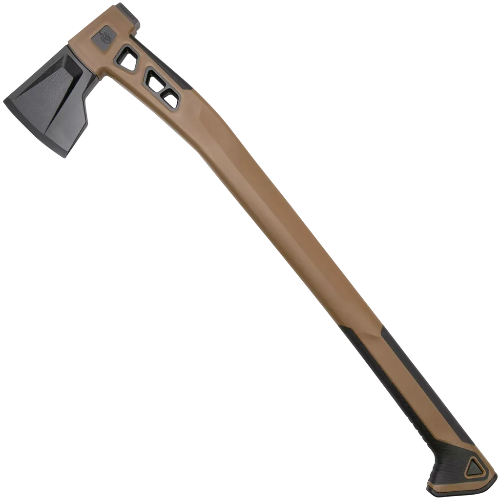 Surviving in the wild takes no shortage of knowledge, a keen awareness, and tools you can depend on. Gear that multi-tasks is key when every ounce is accounted for. The Bushcraft Axe addresses two primary needs: starting fire and building shelter. The ergonomic design reduces weight and improves grip for long haul use, and the blade features machined relief for deeper cuts. Yet, the genius is in what you can't see: gear storage compartments that are water-resistant and can house paracord and a mini size lighter [or fire starting material]. Features: Waterproof gear storage stick Paracord – 9" Dry tinder or mini lighter storage Hammerhead Forged single piece axe head and overstrike guard Rubber overmold grip Porting for weight reduction