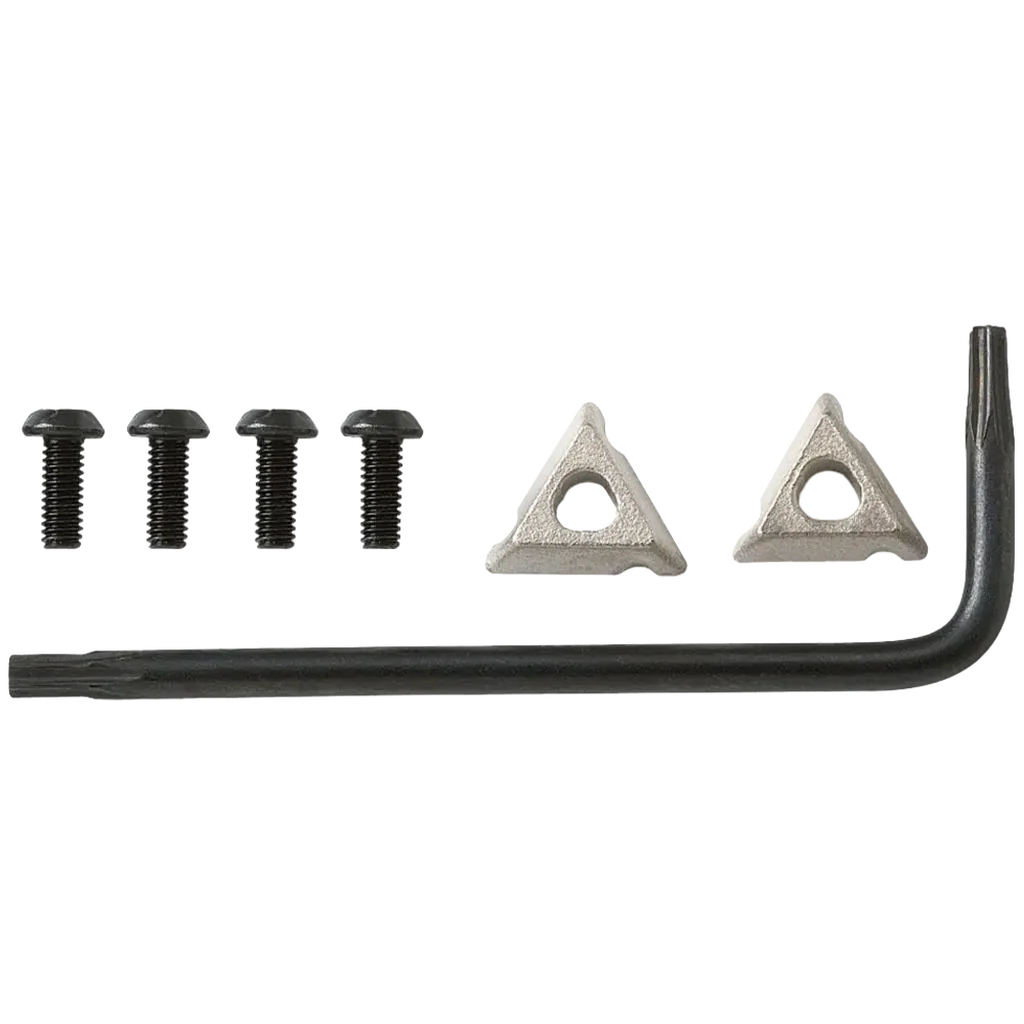 The Carbide Cutter Replacements are a must have for a number of multi-tool platforms. Once you have used all three rotations of the current insert, the replacement is easy using a T8 torque wrench, four replacement screws and two replacement blades, also included. Features: – Two Tungsten Carbide Cutter Replacements For Multi-Pliers – T8 Torque Wrench Included – Triple-Sided Cutting Surface