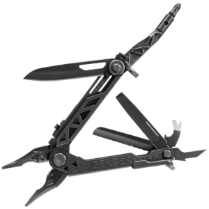 An innovative centre axis driver that opens to align like a real screw driver, yielding maximum torque and rotation and a 30% longer outboard blade, as well as one-handed opening sliding jaws and full size real tools. Packed with 16 essential tools; you'll never need anything else – at work or at home including a full length bit driver for increased leverage on the hard jobs. It's your new go-to Multi Tool. It's the Center-Drive. Features: Needlenose Pliers Magnetic 1/4" Bit Driver Serrated Blade Awl Wire Strippers Ruler Flathead Bit Regular Pliers Fine Edge Blade Pry Bar Rotatable Carbide Wire Cutters File Phillips Bit Bottle Opener