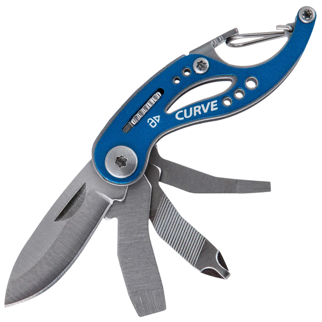 A functional pocket tool with a sleek look, the Curve Blue contains a variety of essential tools perfectly suited for everyday tasks. The Curve Blue can safely lock active instruments in place, allowing users to complete their tasks without fear of their tools shifting underhand. Capable of being attached to nearly everything with its built-in carabiner, the Curve Blue is always there when you need it most.