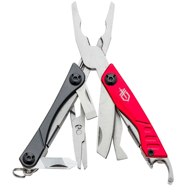 The Dime is a mini multi-tool, capable of being attached to keychains, lanyards, and more. Bustling with a wide variety of implements, including a pair of spring loaded needle nose pliers as its central appliance. The Dime mini multi-tool easily collapses down for fast transport, with tools folding into the handles. Features: Pliers Wire cutter Fine edge blade Retail package opener Scissors Medium flathead driver Crosshead driver Bottle opener Tweezers File