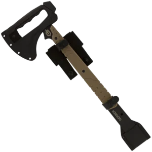 The Downrange Tomahawk is a virtually indispensable piece of equipment at the camp. Not only is it sturdy and sharp, the back of the axe head can be used as a hammer for tent pegs and the like. The axe is made of full-tang, high-alloy, 420HC stainless steel with a Cerakote coating and G10 handle scales for an enhanced grip. MOLLE compatible nylon sheath included.