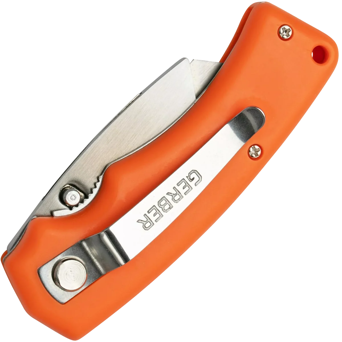 Introducing the Gerber Edge folding utility knife, a reliable and practical tool that's ready when you are. This knife is designed with an eyecatching orange rubber handle, providing a solid grip even in wet conditions. The handle is made from rubberised TacHide, ensuring a firm hold and enhancing your control during use. The Gerber Edge Knife is equipped with a spring lock system, allowing for quick and easy blade replacements. It accepts both standard and contractor-grade utility blades, making it a versatile addition to your toolkit. This feature ensures that you can always have the sharpest blade for precise and efficient cutting. Safety is a key feature of this knife. It is fitted with a liner lock that keeps the blade securely in the open position when in use, helping to prevent accidental injuries. Additionally, the knife comes with a clip for secure storage, ensuring it's safely tucked away when not in use.