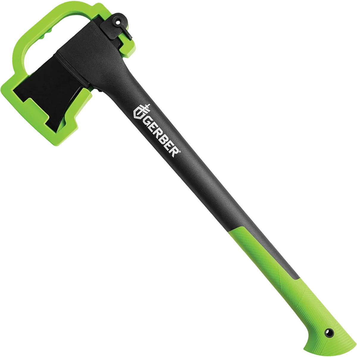 The Freescape Hatchet is a slender axe with a robust nature, able to slice through wood at a greater than average depth due to its forged steel head. Attached to a glass-filled nylon handle with a soft touch overmold for added strength and handling, complete with bright green accents for visual awareness of the tool from a distance. A reliable tool for all wood chopping needs, suitable for shaping wood, creating kindling, chopping trees, pounding tent stakes, creating primitive shelters and processing game. The Freescape Axe includes a handy sheath for the axe head whilst not in use. The sheath can also be used as a holster when not protecting the axe blade.