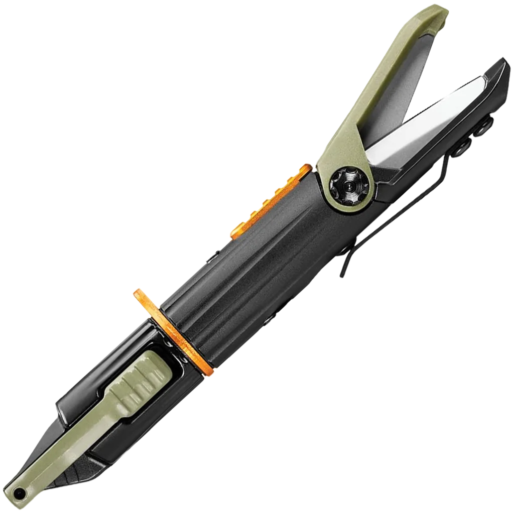 - Scissor snips remain slightly open to cut line while clipped to the pocket.