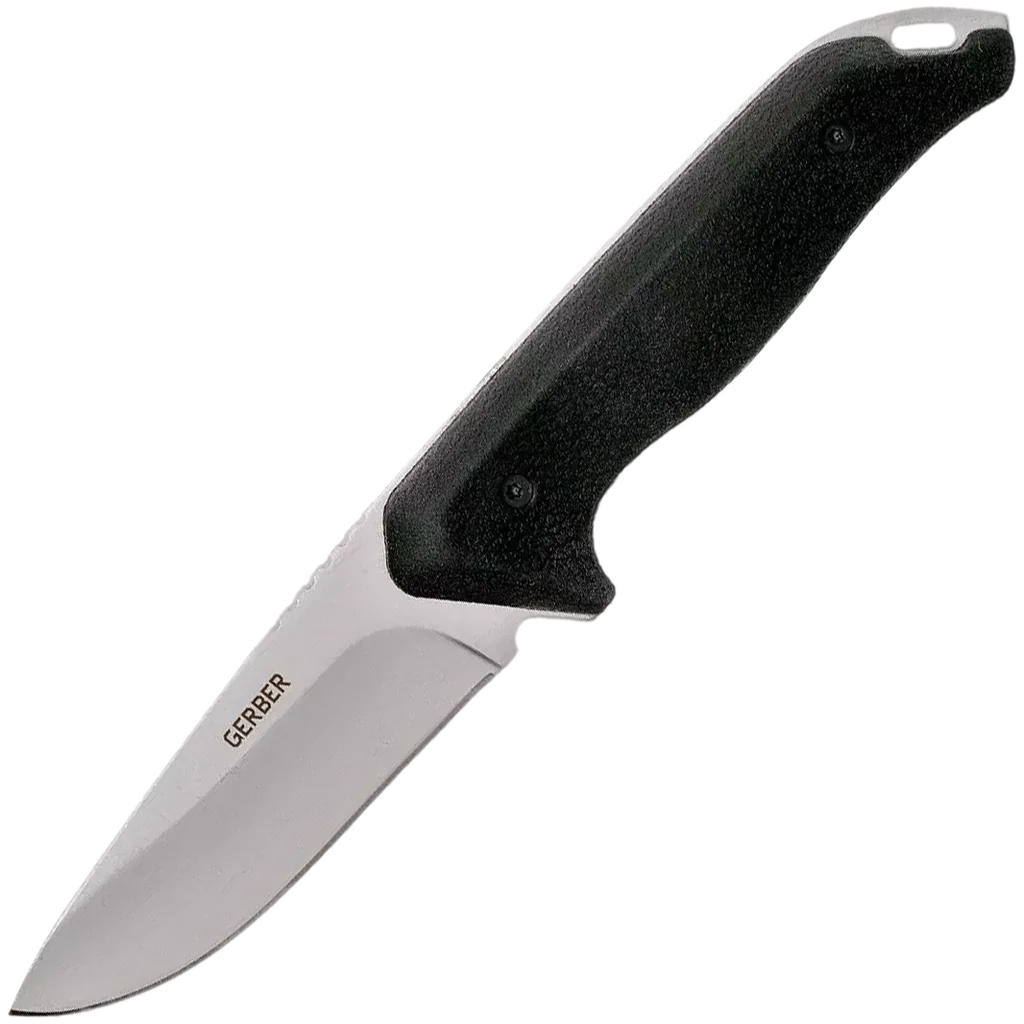 The Moment Fixed Blade is a large full-tang knife suitable for everyday tasks. The knife is made from stainless steel for corrosion & stain resistance, and features a drop point fine edge blade for precision cutting and easy sharpening. The textured rubber handle provides the wielder with a comfortable grip on the knife and includes a built-in lanyard hole on the pommel. The supplied Nylon sheath with metal snaps keeps your knife within easy reach and securely stowed in the field.