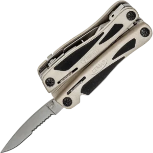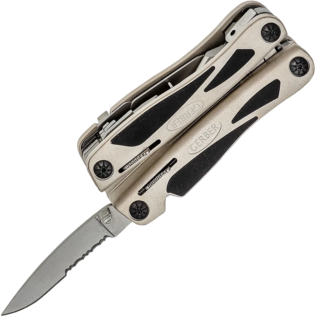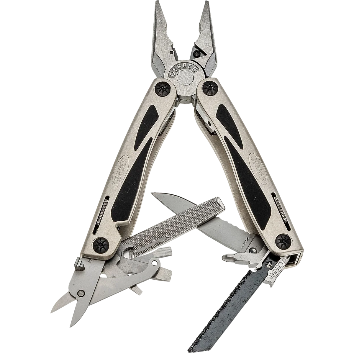 A unique full-sized multi-tool within the Gerber range, the Legend has been designed with a unique body, with a means to providing maximum ergonomic efficiency. Tactile rubber inserts are spread across its handles providing excellent grip and comfort whilst using the tool and when combined with the aluminium body results in an incredible reliable multi-tool with high durability. The central appliance is a pair of needle nose pliers with integrated carbide cutters, which are adjustable and replaceable. A variety of other essential tools are conveniently located within the handles, including a replaceable RemGrit saw. Tools can now be used without fear of unintentional movement due to the built-in Saf.T.Plus ™ locking system. The Legend multi-tool is simple to store, with implements that fold into the handles and can be locked in place, helping to significantly reduce size allowing for easy and safe transport. Needle-nose pliers with replaceable carbide cutters, Fine edge knife, Fiskars scissors, Cross point screwdriver, Small, medium and large flat blade screwdrivers, Bottle opener, File, Contoured aluminium handles, Tungsten carbide wire cutters