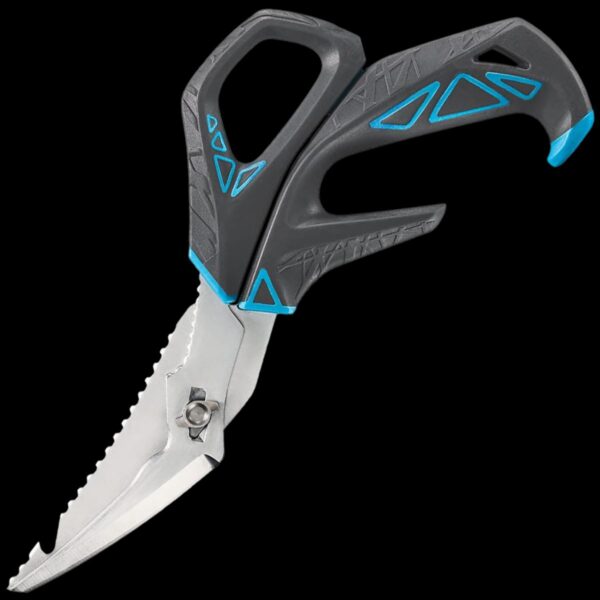 The Processor Take-A-Part Saltwater Shears, a set of multi-purpose shears designed for saltwater environments and fishing. This product features a set of sharp cutting shears for snipping and fin clipping (fin clipper built-in) with a fine edge knife blade set into the shear underside, for straightforward cutting tasks. The shears top-side features a built-in-hook for gutting and cleaning fish, as well as a long scaler for removing fish scales. The shear blades can be uncoupled, so that fishing teams or individuals can divide-up jobs more easily, sharing out the tool pieces to where they are needed. This removal system also allows the user to clean their tools more easily and thoroughly. The Processor Take-A-Part Saltwater Shears are perfect for fisherman who fish in saltwater environments, owing this ability to Gerber's good use of stainless steel construction for rust-resistance, as well as their very own SALT Rx for added protection. The product also features a unique HydroTread Grip, engineered by Gerber for traction with its raised edges that channel water and moisture away for unsurpassed grip and easy cleaning.