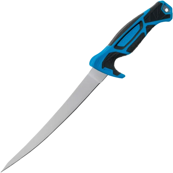 The Controller 8" Saltwater Fillet Knife is designed for clean, smooth cuts with a flexible blade that provides just the right amount of give. The intuitive GuideFins & tactile HydroTread Grip offer ultimate control of the knife, even in slippery conditions. Engineered to meet the needs of saltwater fisherman, SALT Rx offers superior protection against corrosion, wear, and tough environments. Selected specifically for its toughness, corrosion resistance, and edge retention, the 9Cr18MoV blade is also mirror polished for added protection and the ability to clean it easily. The Controller is constructed with a full tang steel blade for sturdy and safe use in slippery situations. A crucial part of the fillet knife system, is the Controller's innovative sheath. Designed with generous venting, the molded plastic sheath doesn't get water logged and is easy to rinse out when the job's done. A built-in sharpener allows for blade touch-ups on-the-go, and the sheath is easily mounted with multiple options for safe stowage on a backpack, belt, or pocket.