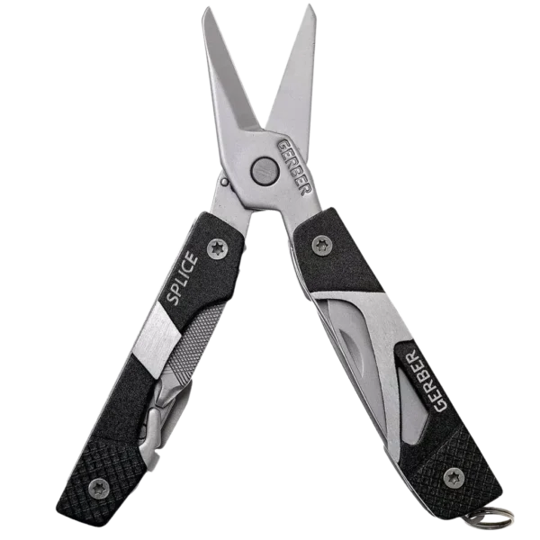 The Splice is a mid-sized multi-tool fitted with a set of strong scissors as its central appliance, as well as a variety of other essential tools conveniently located within the handles. It is constructed of stain & corrosion resistant stainless steel, making it highly practical and reliable. The Splice is simple to store, with implements that safely fold into the handles, significantly reducing size allowing for easier transport. Complete with lanyard ring attachment.