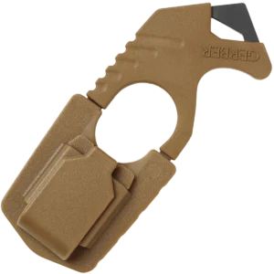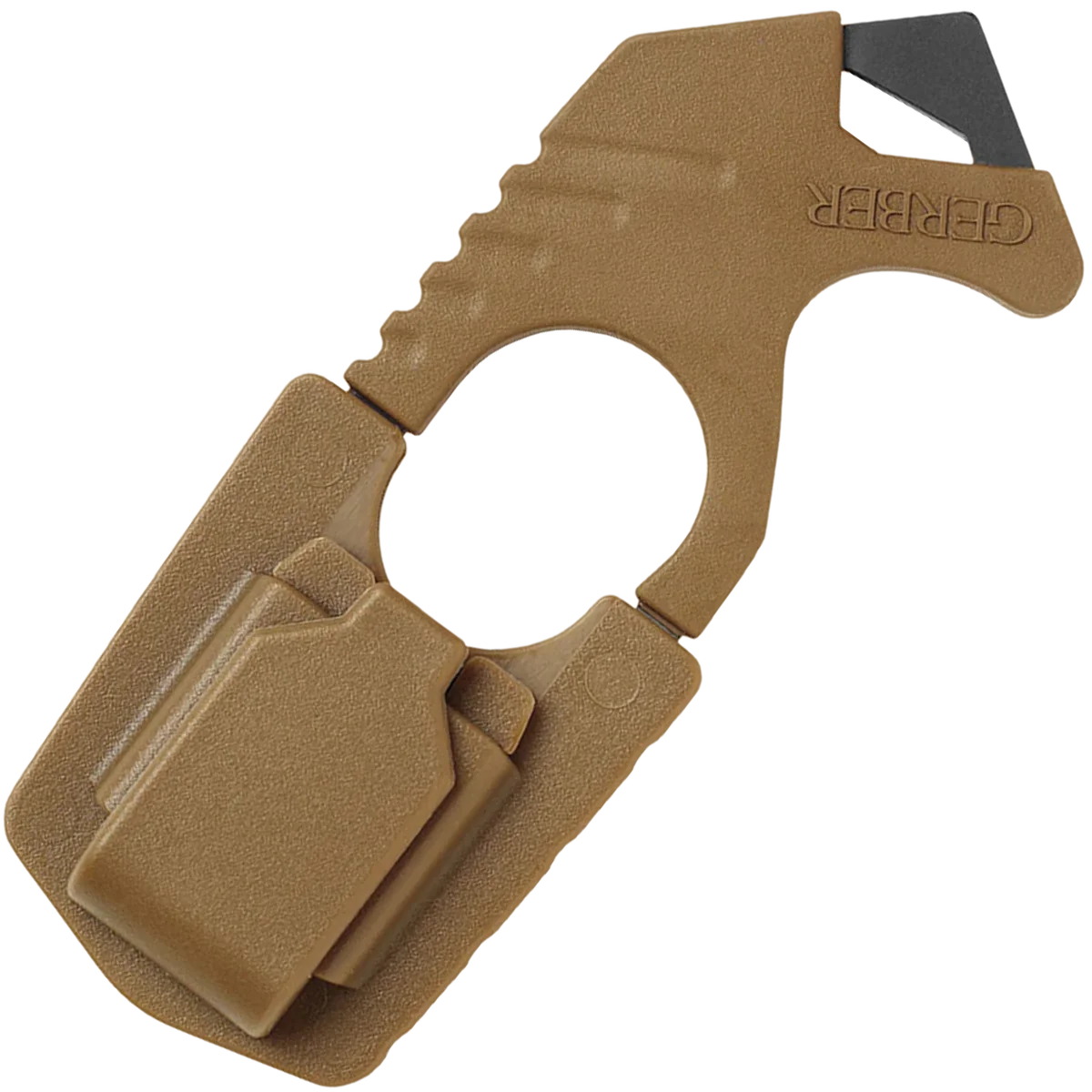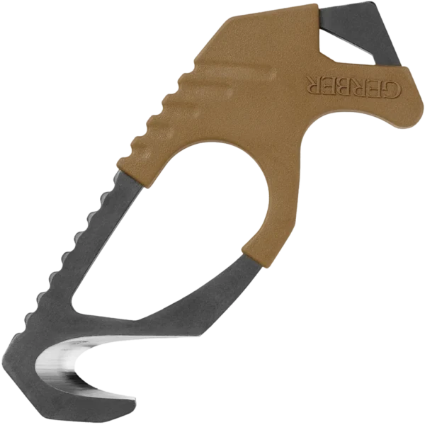 Introducing the Strap Cutter by Gerber, a tool designed for emergency situations with an innovative edge protecting design. This essential companion features a 420HC steel hook knife capable of slicing through virtually anything with ease. The moulded rubber grip and finger hole provide stability and precision, ensuring you can confidently tackle challenging tasks. But that's not all, this tool also includes a glass breaker for swift action when it counts most. The Gerber Strap Cutter is the perfect safety tool for rescue services and medics.