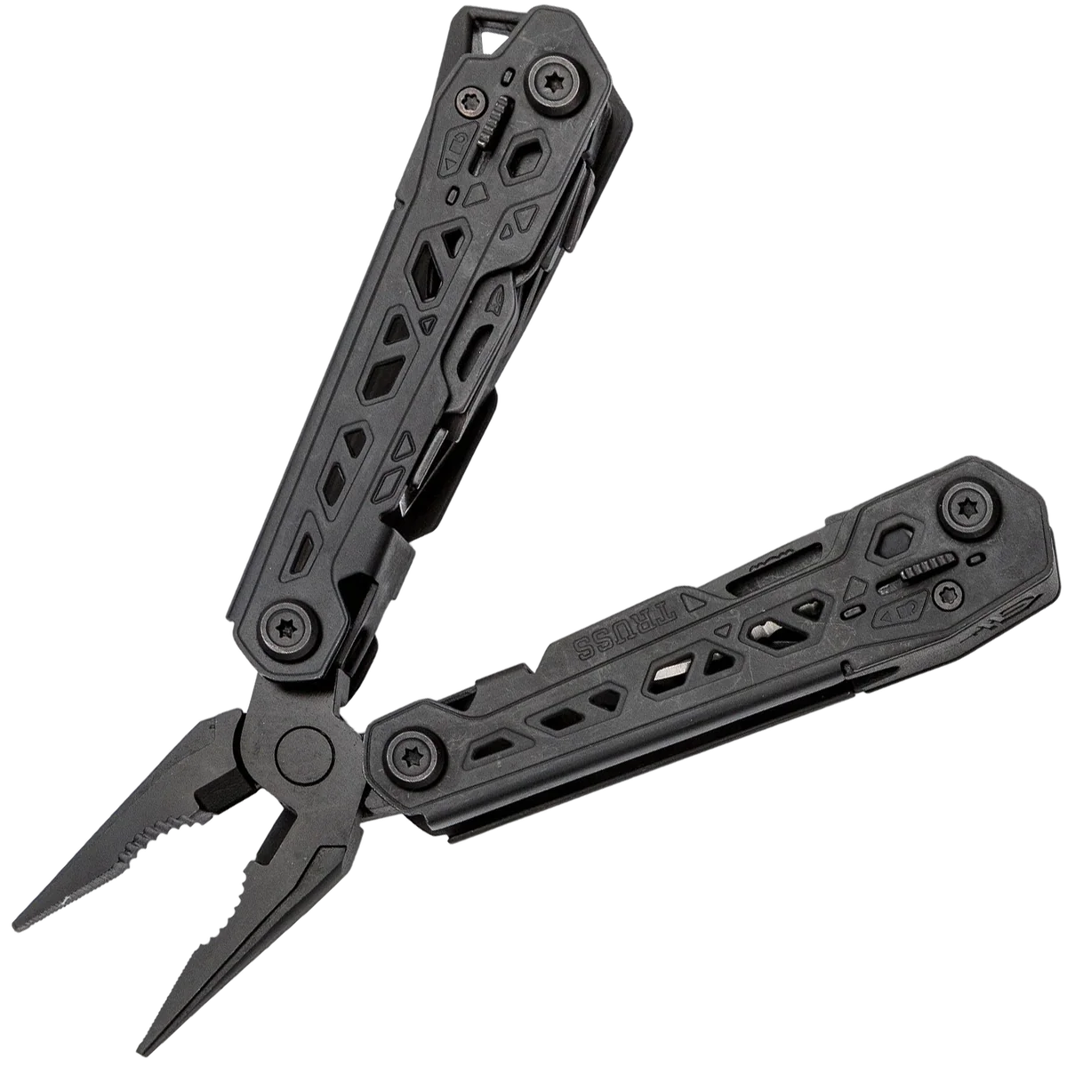 The Truss is an all-inclusive multi-tool, with 17 tools built to the exacting needs of the professional user in a size-conscious design. This full size multi-tool aims to remove excess heft while keeping all of the functionality. The result is a professional-grade multi-tool that bridges the gap between the problem and the solution. Boasting 17 curated tools, the Truss is built to handle any and all tasks thrown at it: at the job site, around the house, and everywhere in between. The optimized tool pack is edited to remove unused tools and include much-requested ones – this multi-tool heeds the call of the demanding user. An evolution of the original Suspension chassis, the Truss includes the benchmark features: all outboard tools, all locking tools, and spring-loaded pliers. 17 Tools – Spring loaded pliers Regular pliers Wire cutter 2.25" Fine edge blade 2.25" Serrated edge blade Scissors Saw Real cross driver Small, medium, and large flathead drivers Can opener Bottle opener Awl File Ruler Wire stripper Improved sheath