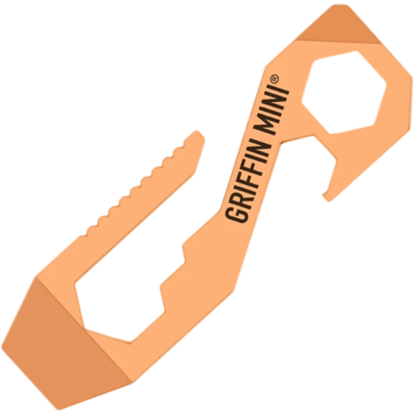 The Griffin Pocket Tool® Mini is the latest size option available to the Griffin lineup. By shortening the overall length, we are helping you lighten the load on your keys and bulk in your pocket. We also kept the overall width and thickness the same to keep the bottle tops popping. This pocket multitool features a deep pocket clip that keeps your keys in place, but it is also your own convenient, compact tool kit. A bottle opener is just the beginning. Your Griffin Pocket Tool® MINI is a box opener, a flat head screw driver, a scoring tool, a bit holder and a prying tool. It also provides you with four wrenches.