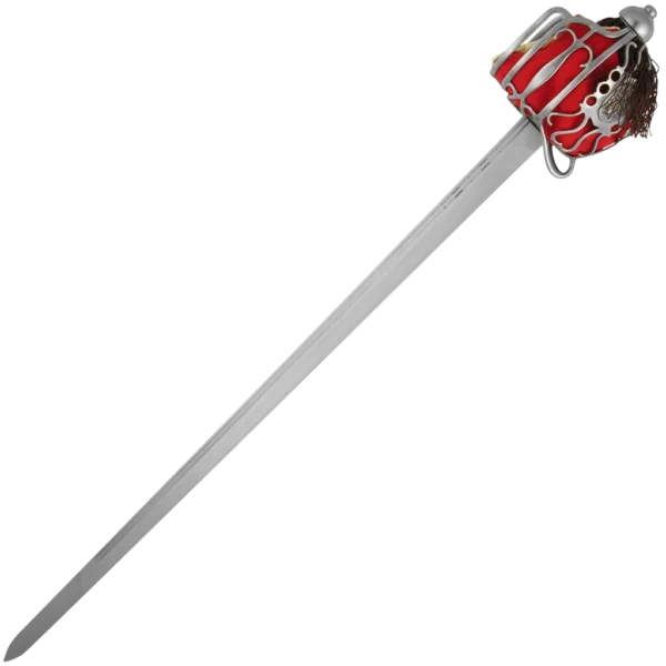 Hanwei's Basket-Hilt Backsword is replicated from an original in the collection of the Royal Armouries in England that dates from about 1760. It is likely that the blade of the original sword was made in Germany a century earlier and re-hilted as basket designs were refined. It has an unusual basket with twin engraved "horned beastie" plaques and a blade with twin fullers running most of its length. This reproduction features a hilt crafted in stainless steel to minimize maintenance and a blade forged in high carbon steel. It has a wire-wrapped genuine ray skin handle and a cloth-covered leather basket liner.