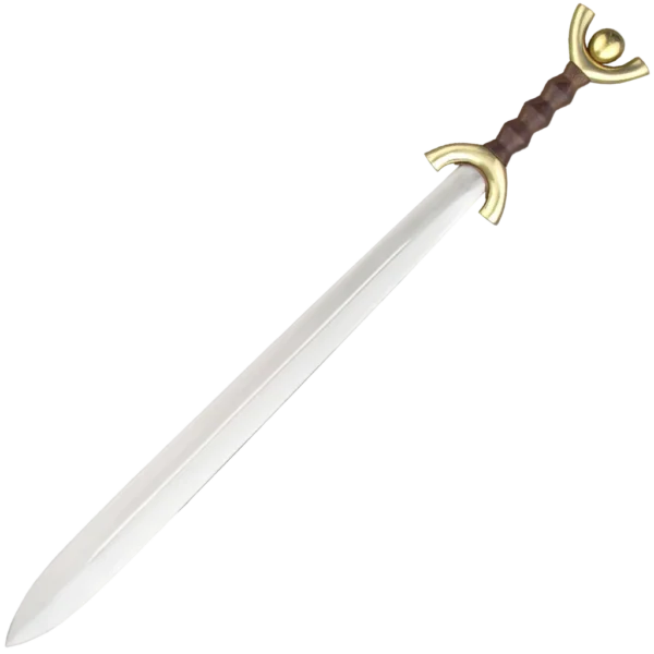 This Celtic Sword has an anthropomorphic hilt and 23" leaf-shaped blade. Solid brass hardware, a macassar ebony grip and leather scabbard make this piece ideal for the Celtic arms collector or re-enactor.