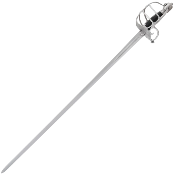 Hanwei's Practical Mortuary Hilt sword was designed for the re-enactor and sparring enthusiast in mind. The blade has a blunt edge that is 1/16 thick and it stays with this thickness all the way to and around the tip. The blade is crafted from 1065 high carbon steel with a tempered hardness of 50 HRC – this hardness is a good compromise to be both hard enough to reduce edge-notching to acceptable levels whilst being flexible enough to keep the blade from being brittle. The guard and pommel are made of steel and the grip is overlaid with black leather. The scabbard is made of fiberglass with a steel throat and chape pieces.