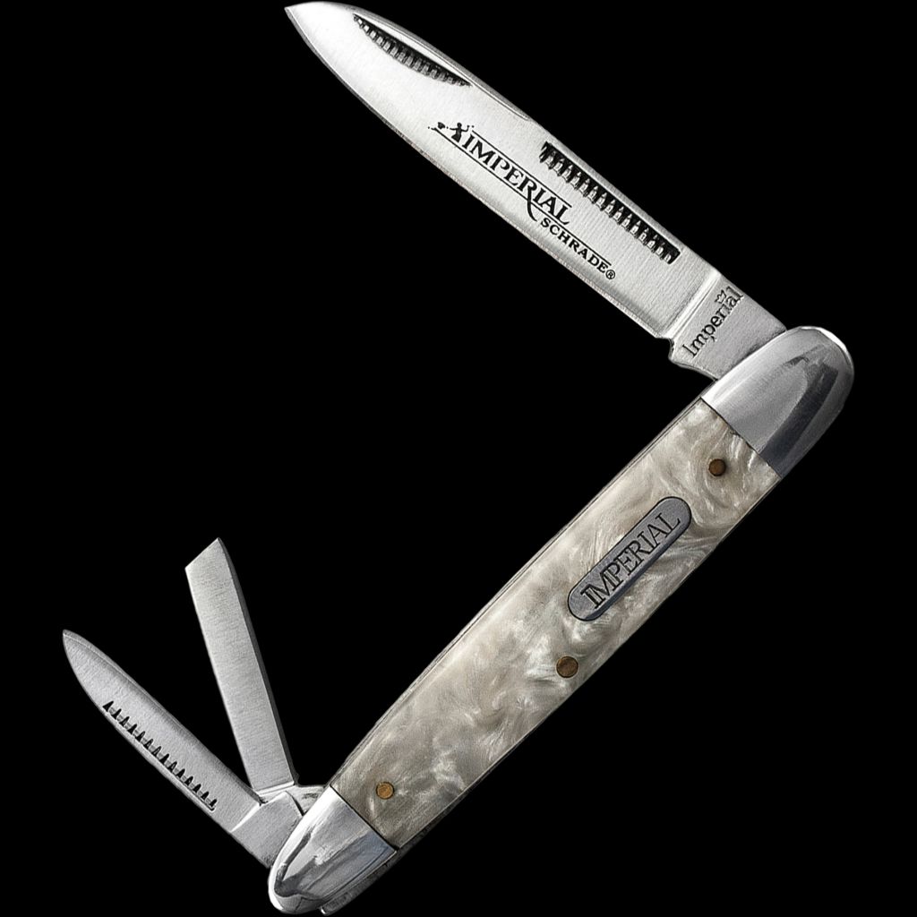 Imperial Cigar Whittler Folding Pocket Knife, 3Cr13 Stainless Steel Spear Point Blade, Coping Blade, and Pen Blade with Nail Pulls, Cracked Ice POM Handles with Stainless Steel Bolsters, Brass Pins, and Heat Treated Back Springs