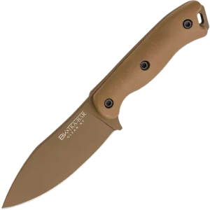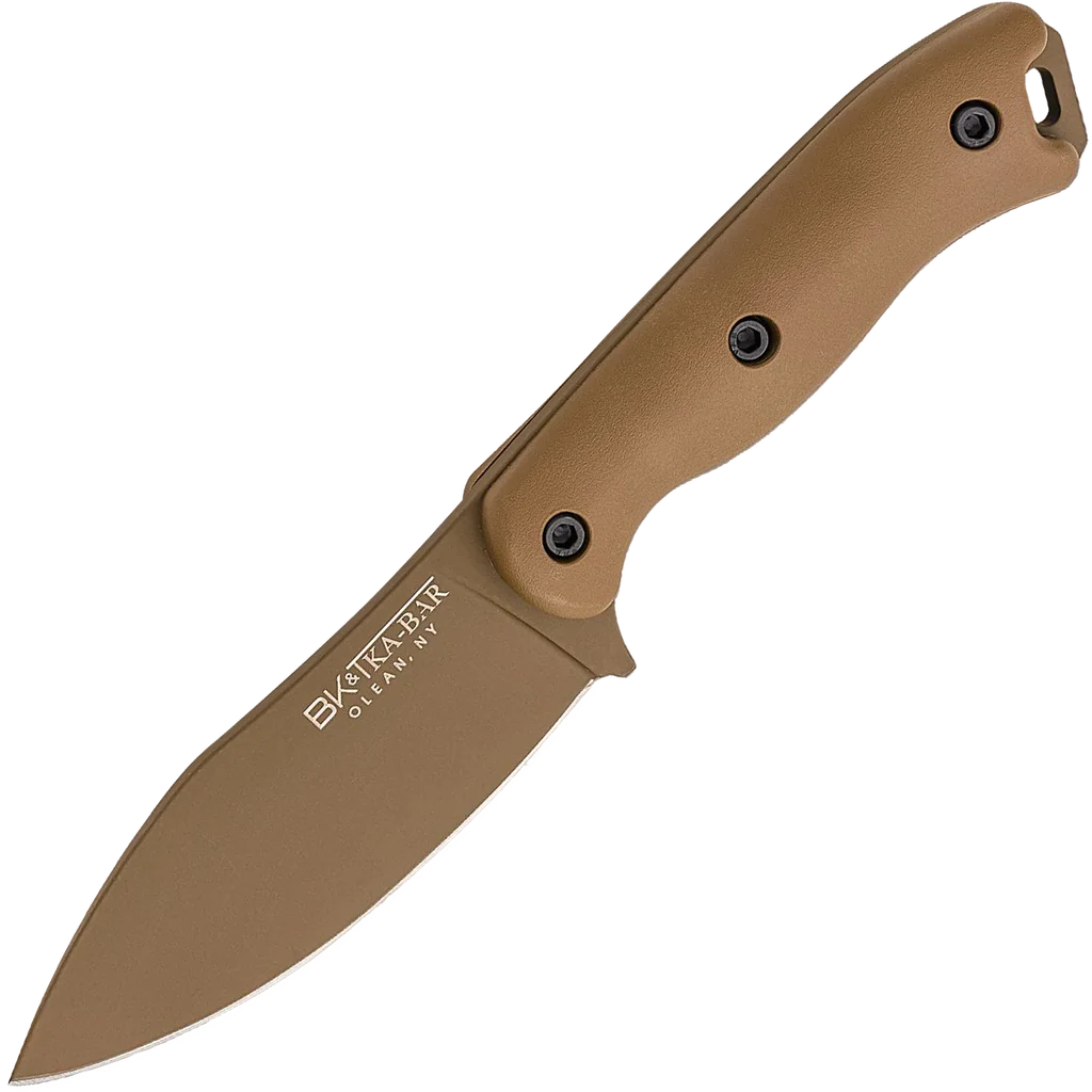 The BK19 Becker Nessmuk is the latest fixed blade in KA-BAR's popular Becker Knife & Tool line. Designed by Ethan Becker, it shares some traits with the highly sought-after Becker BK18 Harpoon, including ultramid handle scales, a Celcon sheath, and a burnt bronze color. The BK19 stands out with its beloved Nessmuk blade shape, which is highly regarded in the bushcraft community. Manufactured in Olean, NY using raw German 1095 Cro-Van steel, the KA-BAR Becker BK19 Nessmuk is an incredibly durable and versatile tool.