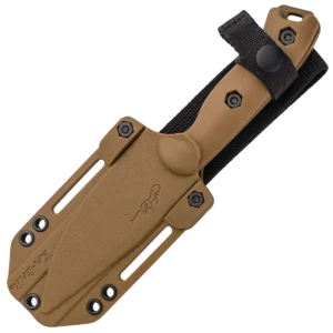 - Included is an American-made Brown Celcon sheath that can be used with the attached belt loop or attached via MOLLE strapping.