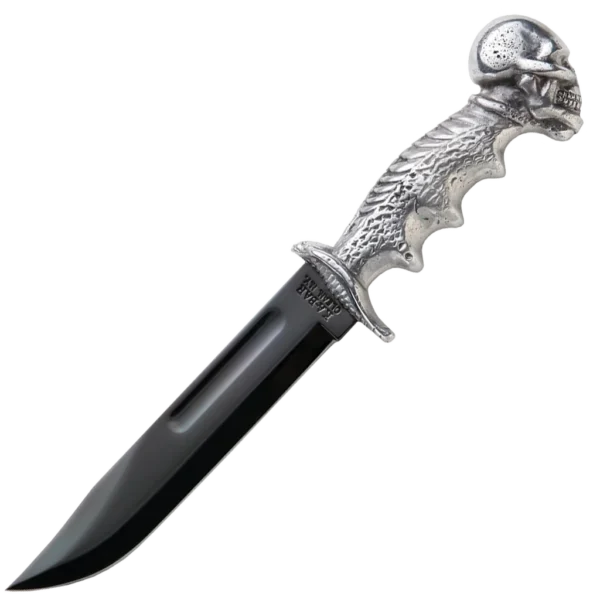 Using his father’s original casts to make the famous skull and cobra handles, Bill Stone touched each and every one of these knives, hand finishing them before sending the blades to be blued. The end result is stunning. The handle is a gorgeous, shiny silver while the blades are a beautifully rich, deep shade of blue that sometimes looks black or silver in photography, depending on the lighting. Sold with JRE semi-custom leather sheath and Gerstner golden oak case with nickel corners, hinges and draw latch. Each knife comes with a certificate of authenticity, a DVD of Bill Stone telling his father’s story and how he came to work with KA-BAR on this limited edition project, and custom-designed packaging. Each one of these Ka-Bar 1217 Eugene Stone knives hand made by Bill Stone are limited and are 1 of 350 manufactured. Proudly Made in the USA.