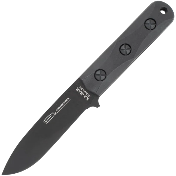 The EK51 Short Drop Point Knife has a 4.3125" drop point blade and measures 8.5" overall. The steel is 1095 Cro-Van and a MOLLE-compatible Celcon sheath is included. The knife is manufactured in the USA with German steel and the sheath is manufactured in the USA.