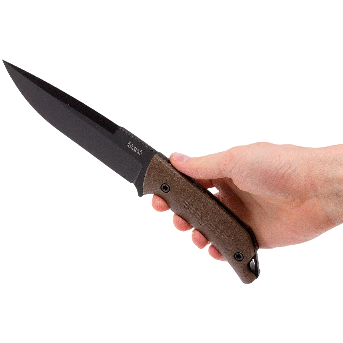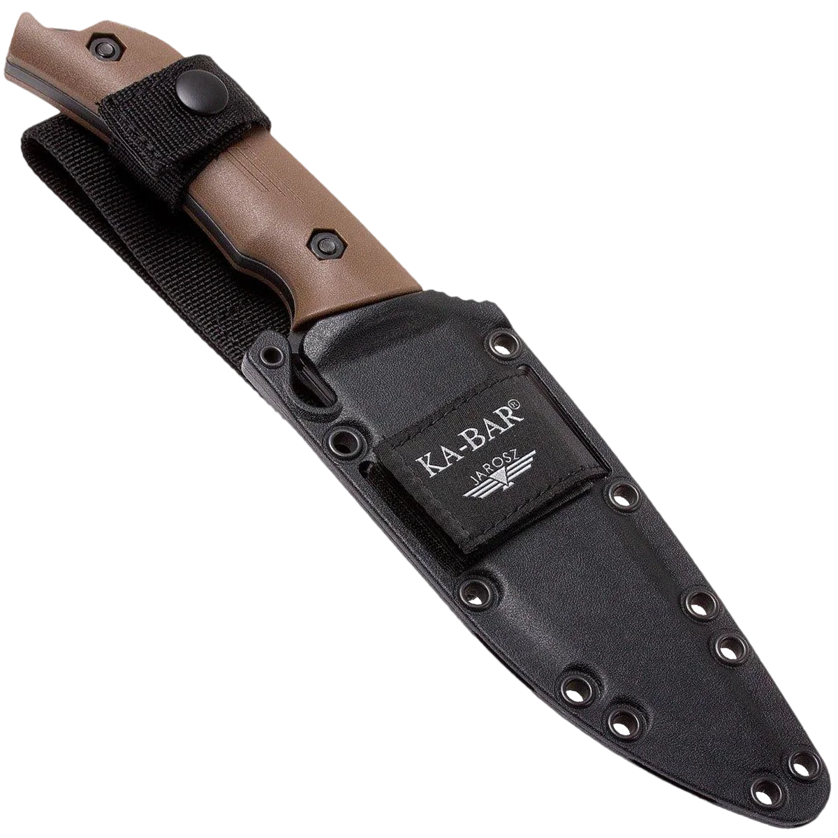 Bigger, faster, stronger. You asked for it and Jesse Jarosz delivered. The Camp Turok is a ramped up version of the popular Jarosz Turok. The 8" blade is made in the USA from 1095 Cro-Van steel. It measures 13" overall and comes with a friction fit Celcon sheath. This is a perfect-sized fixed blade for tactical, camp, and survival tasks in a robust design by custom knifemaker Jesse Jarosz. The Jarosz family has a long and proud tradition of working with their hands to produce quality products, from woodworking to general carpentry. Jesse used his family's knowledge, work ethic, and access to equipment at a young age to build the skills that would lead to the creation of Jarosz Knives. Specifications 7511 Jarosz Camp Turok Overall Length: 13.00" Blade Length: 8.00" Thickness: 0.188" Blade Edge: Plain Steel: 1095 Cro-Van Grind: Flat HRC: 56-58 Edge Angle: 20 degrees Handle: Ultramid Sheath: Celcon Weight: 0.80 pounds Designer: Jesse Jarosz