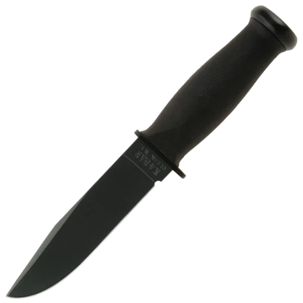 A remake of the ever-popular and sought-after knife issued to the Department of the Navy during WWII, the Mark I features a non-reflective black blade that is epoxy powder-coated. Tests prove the finish is more durable than ever. The classic oval shape of the original KA-BAR remains and has been modernized with a material nearly impervious to sweat, chemicals, water and wear – Kraton G®. Tang stamped USN. MOLLE compatible hard plastic sheath included.