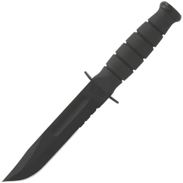 9.25" overall, this knife is a practically sized fixed blade knife that features a non-slip Kraton G handle. Black Kraton G handles are contoured into the familiar oval shape, comfortable in hand while providing excellent traction and control. Tang stamped USA. Leather sheath included.
