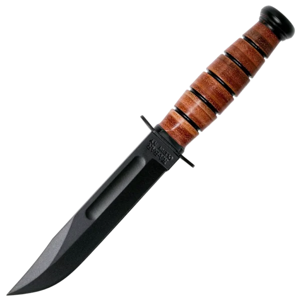 Featuring KA-BAR'S famous oval-shaped leather handles, the Short KA-BAR version of the traditional KA-BAR is made just as well as the original, only 3/4 the size. The blade is made from 1095-carbon steel and the handle is enhanced with a knife guard to make sure you will never end up on the razor-sharp edge during heavy-duty use. It feels comfortable in the hand, even in cold, wet conditions. Tang stamped USMC. Leather sheath included.