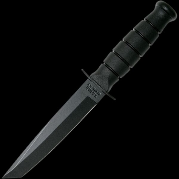 A compact, stout tanto blade is rugged and appropriate for piercing through the toughest materials. Black Kraton G handles are contoured into the familiar oval shape, comfortable in hand while providing excellent traction and control. Tang stamped USA. Leather sheath included.